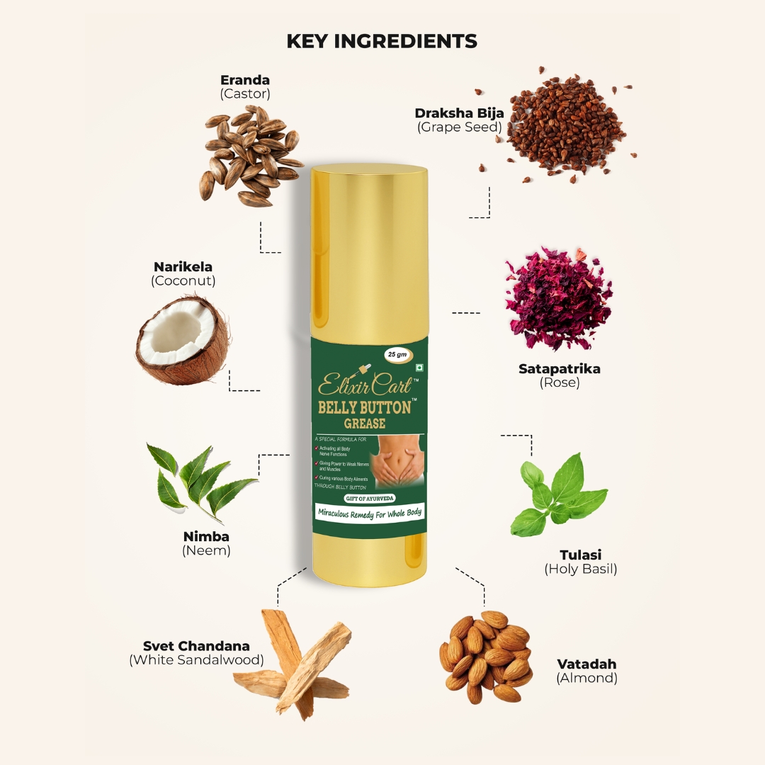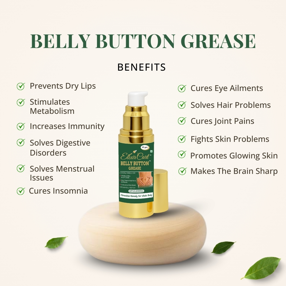 Take a pea sized amount of grease with your little finger and apply it inside and around the navel. Leave it on. Apply it once at night before sleeping.
