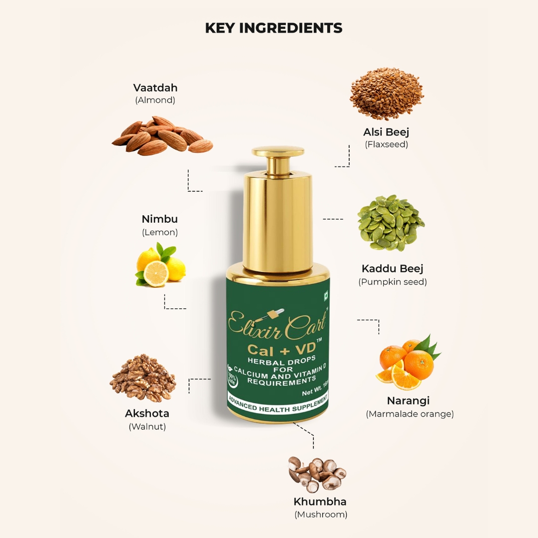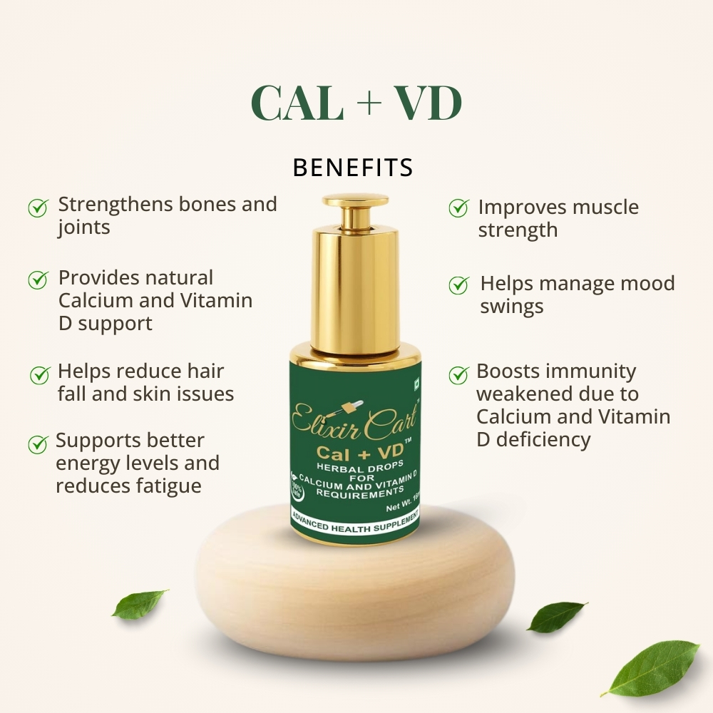 Strengthens bones and joints. Provides natural Calcium and Vil-D supplementation. Helps in reducing hair fall, skin problems, fatigue, muscle weakness, mood swings, weak immunity associated with deficiency of Calcium and Vitamin-D.