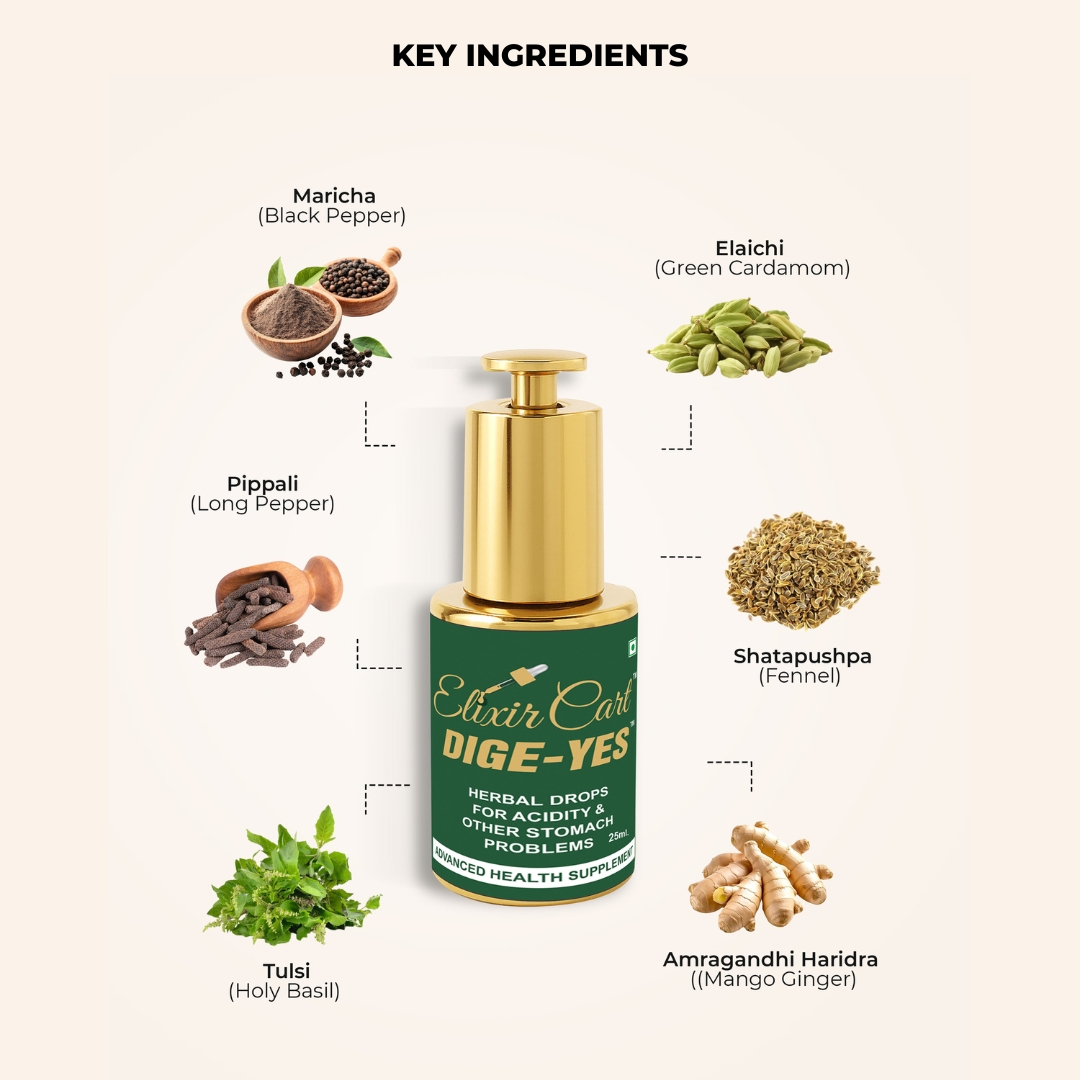 Useful in treating all digestive issues such as gas, bloating, acidity, indigestion, heartburn, stomach pain and nausea.